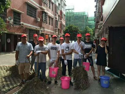 2017年8月18日,为扎实清理湘潭九华园区内卫生死角,营造良好环境,保障居民生活质量,湘潭九华经开区再次组织发动创文志愿者进入社区进行卫生打扫,清理绿化带内垃圾及社区“牛皮癣”等。湘潭国中水务有限公司职员在生产部经理徐毅带领下,充当社区志愿者,积极参加了这次万人清扫活动。虽然天气非常炎热,但大家的工作效率很高,2-3人分成一个小组,各有分工,互相配合,赢得了社区居民的赞赏。